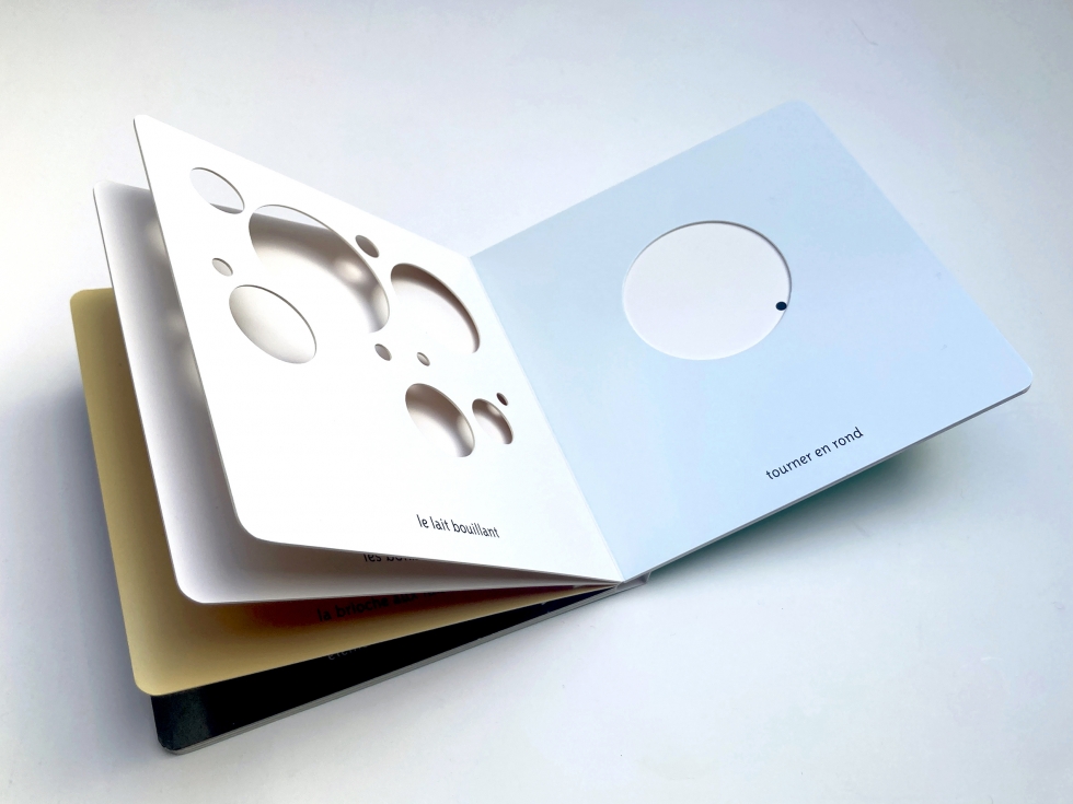 Un album aux pages colorées, percées de trous. Un drôle d’inventaire poétique qui invite à ouvrir l’œil sur l’expression des formes simples.