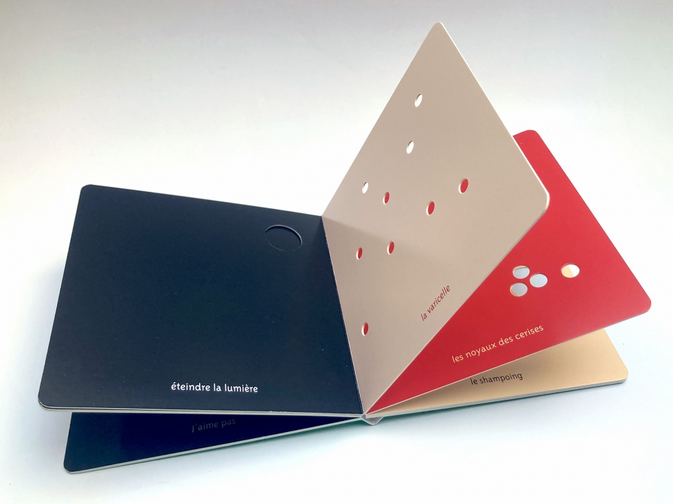 « Un irrésistible jeu de « j’aime pas », en énumérant les petites peurs et phobies du quotidien. Quelques petits trous bien placés et tout est différent. »